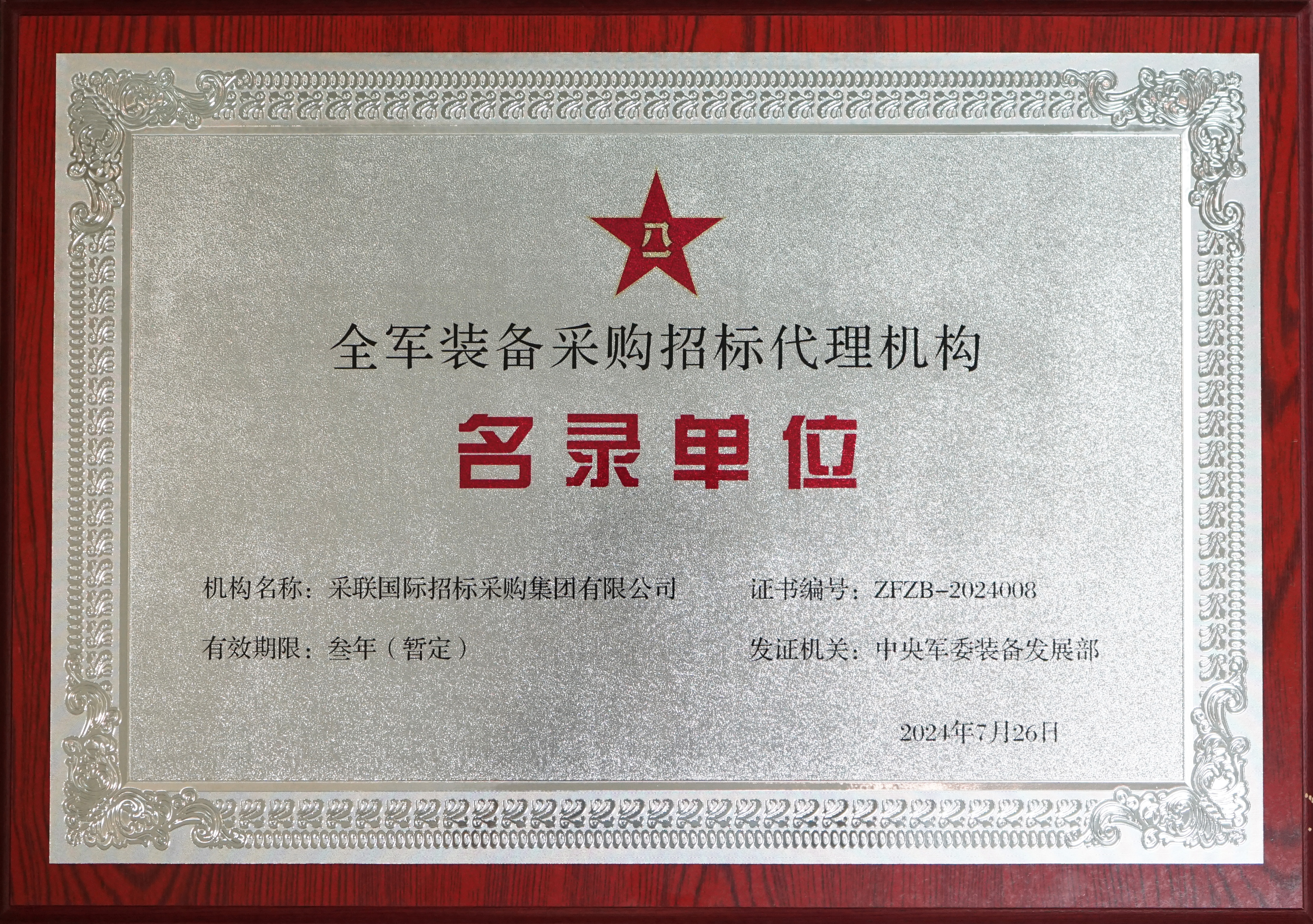 ● 首次入圍全軍裝備采購(gòu)招標(biāo)代理服務(wù)機(jī)構(gòu)。