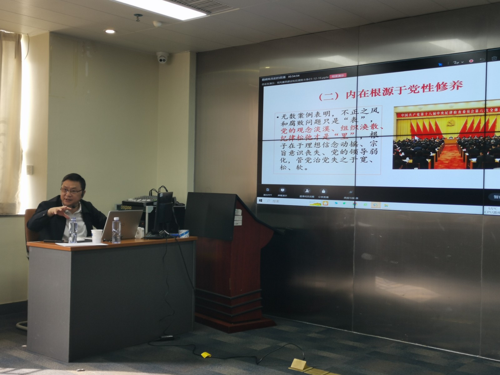何良蘇教授以“深入推進(jìn)黨風(fēng)廉政建設(shè)與反腐敗斗爭”為主題,圍繞“不正之風(fēng)和腐敗是黨面臨的嚴(yán)重威脅”、“不正之風(fēng)和腐敗問題生成的主要根源”、“推進(jìn)黨風(fēng)廉政建設(shè)和反腐敗斗爭思路”三個(gè)方面,為大家進(jìn)行了講授和輔導(dǎo)。
